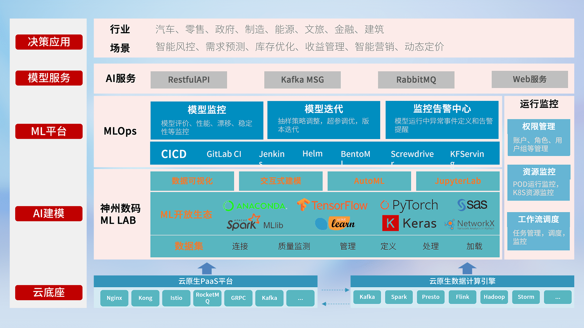 数据+模型双引擎驱动,,面向智能服务场景,,,,快速灵活利用AI技术,,支持业务决策,,,,助力企业智能化转型破局。。。